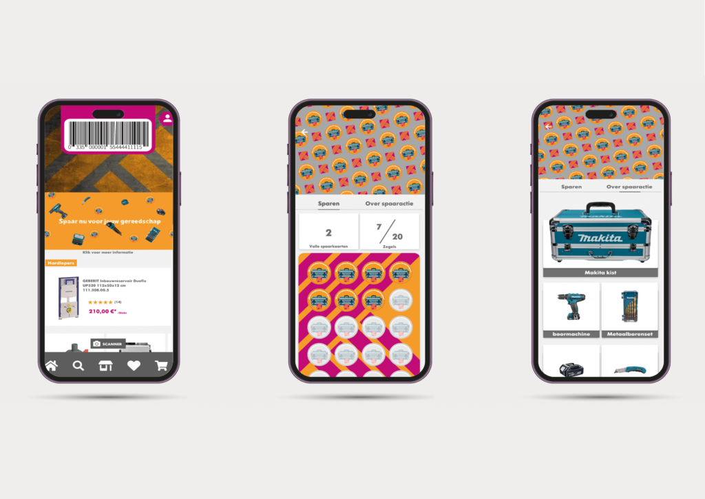 De opdracht was om een spaaractie te verzinnen voor een bedrijf naar keuze, hierbij heb ik gekozen voor Hornbach waarbij je voor makita gereedschap kon sparen. Dit moest in een groepje van 4 personen. De dingen die ik moest realiseren waren de 3D hamer, de app en het spaarboekje.